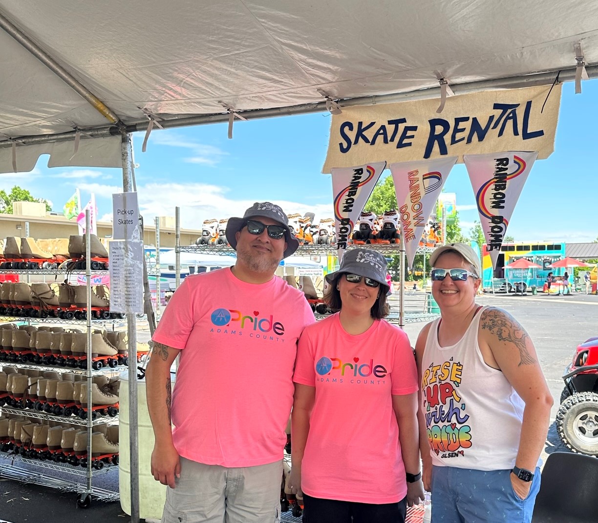 The Adams County 2023 Pride Festival featured an artist takeover with Rainbow Dome. Visual and performance art and joyful roller skating made the event bright and big. The theme for the artwork was summertime bounty. Draping Riverdale Regional Park in vibrant colors, amazing textures and textiles, and the simple, beautiful message that we all belong.